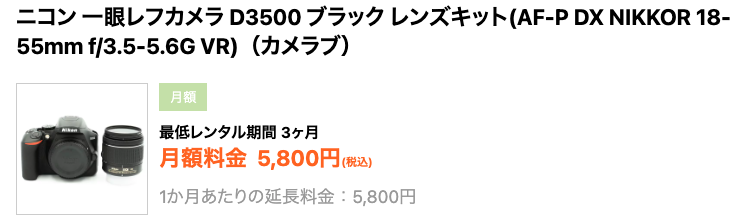 | 最低レンタル期間 | カメラ製品:2泊3日〜 |