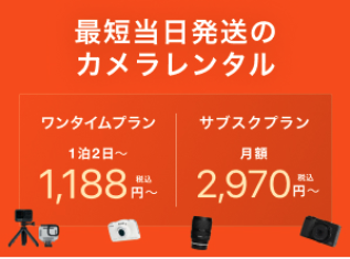 また、GOOPASS(グーパス)CAMERA RENT(カメラレント)などのサブスク型レンタルでは、