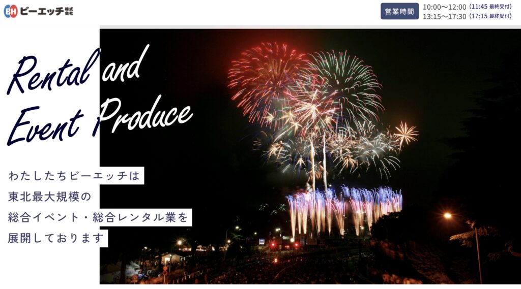 .『ビーエッチ株式会社』は、宮城県仙台市を拠点に、各種イベント用品・式典備品のレンタルおよび設営サービスを提供する総合レンタル企業です。
